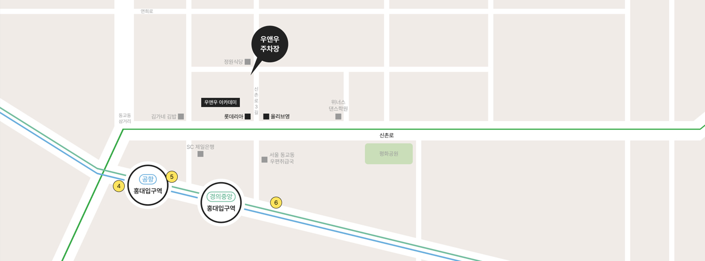 - 2호선 홍대입구역 4번 출구 도보 5분